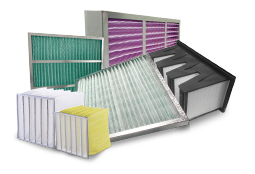 Filtros de superficie extendida plegado tipo Mini Pleat y Pleated, Filtros Pocket (bolsillo) y filtros lavables, fabricados con medios sintéticos proporcionando un alto nivel de eficiencia reteniendo partículas de 1 micra, ofreciendo resistencia a la humedad y rendimiento general gracias a su baja caída de presión inicial. Filtros utilizados en etapas intermedias para la protección de filtros finales en sistemas de filtración HVAC, con clasificaciones de eficiencia MERV8 hasta MERV15 según norma ASHRAE 52.2.