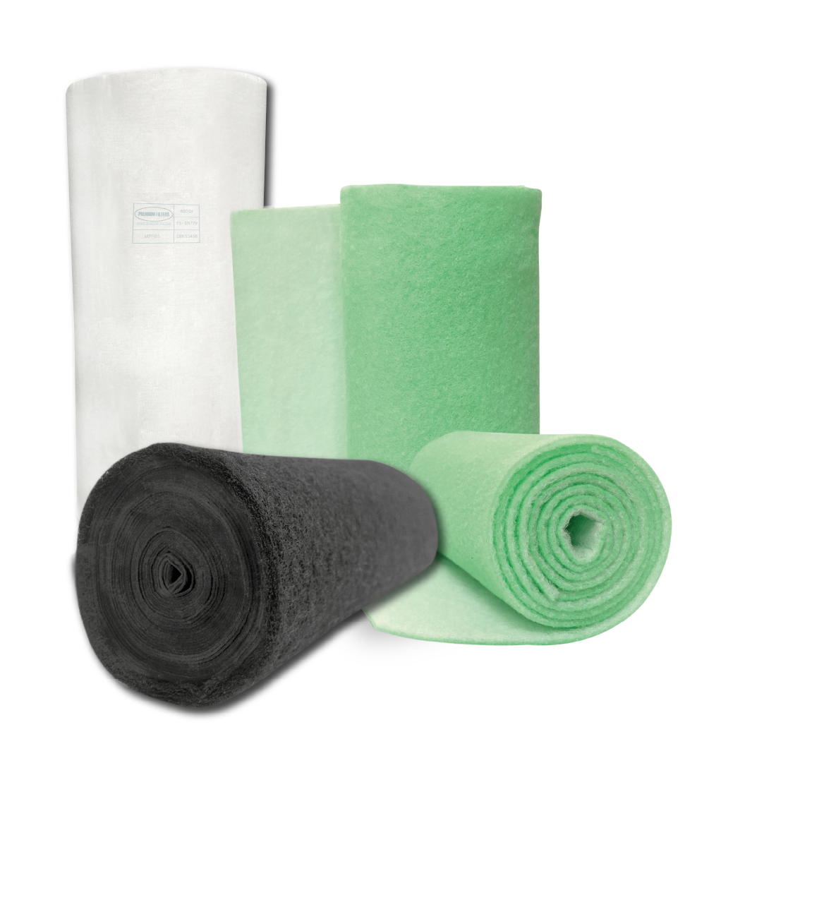 Medios filtrantes fabricados con fibras sintéticas y otros con fibra de vidrio de cuarzo para sistemas de flujo de aire en cabinas, utilizados como filtro piso, pre filtros, filtro techo y filtros finales, ofreciendo una alta eficiencia en la retención de partículas con baja caída de presión y dando un buen rendimiento en el consumo mínimo de energía. Disponibles en eficiencias G1, G2, G4 y F5 según norma EN 779. 2002.